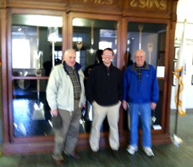 • Friday- After check-in folks gathered in the 'Enberg' Meeting Room for a "Meet and Greet" party and enjoyed beer, drinks, and snacks. A "Thinking of You" greeting card for Mrs. Carter was passed around and signed by all attendees. At 7 pm groups were formed to go to dinner at neighborhood restaurants. A large group went to Abbotts Lobster-in-the-rough located on the coast and enjoyed eating outside on the patio. After dinner most returned to the meeting romm for more chit-chat. (The meeting room is named after Dick Enberg, the sports announcer, who is one of the investors in the Hampton Inn org.)