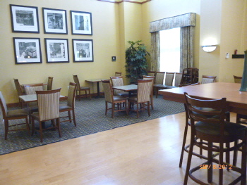 | Hampton Inn Dining Area Corner | Hampton Inn Breakfast Bar. Great waffles! Next time we may not be able to climb these stools !! |
