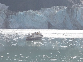 Johns Hopkins glacier with National Geographic ship in the foreground