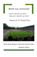 and Women's World Cups 2023. Notes covering all special and record breaking aspects of the tournament are included. For all teams that reached the Round of 16, statistics from some of the important matches are presented. The statistics are in chart form which report how the team performed offensively in eight different categories. As a bonus the author will send to the reader a copy of the Android app thaat produced statistics presented. ![]() To purchase this Ebook please send $7.00 via Paypal to account "ggaston@windstream.net", or via check payable to Gerald Gaston to address 1795 Sinking Creek Rd., London,KY 40741. BONUS- After purchase please send your email address to ggaston@windstream.net, so we may send out the Android app, Chart Soccer Team, which create the statistics presented here. Please included the code "MYEBOOK". ![]() Mr. Gaston would welcome an email to inform him of your comments about the book. Email to ggaston@windstream.net Best wishes to all Soccer fans. |